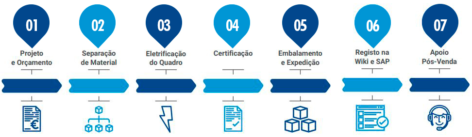 A ZEMBE dispõe de uma oficina qualificada de eletrificação de quadros elétricos e mais de 25 anos de experiência em quadros de comando e potência. Todos os elementos da equipe ZEMBE têm mais de 15 anos de experiência e podem apoiar o seu projeto de forma competente e profissional.